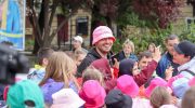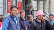 Містяни зустріли переможця цьогорічного «Євробачення» у рожевих панамках. Олег Псюк робив із фанатами селфі та роздавав автографи. Музикант підтвердив, що переможний кубок конкурсу виставить на аукціон, а вторговані кошти підуть на потреби захисникам.