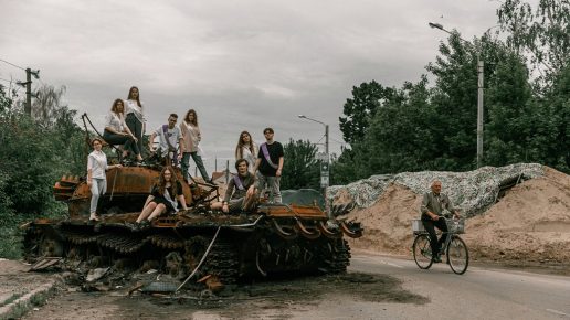 Фото біля згорілого гіпермаркету “Епіцентр”, на руїнах будинку на вулиці Чорновола та біля згорілого гуртожитку в мікрорайоні Шерстянка. Таку фотосесію на випускний альбом для чернігівських школярів організував фотограф з Івано-Франківська Станіслав Сеник.