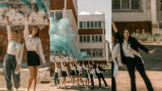 Катерина, одна з випускниць Чернігова з 12 школи. Вони з класом підтримали ідею фотографа і погодились на зйомку. Локацію обрали біля Епіцентру. Вони пропонували йому різні місця, але зупинились саме на згорілому гіпермаркеті.