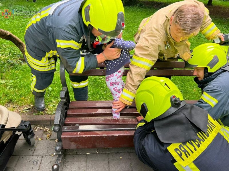 Ніжка застрягла в лавці: франківські рятувальники допомогли 3-річній дівчинці. ФОТО