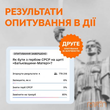 Сьогодні, 21 липня, завершилося опитування про майбутнє символіки на щиті монумента «Батьківщина-мати» у Києві, ініційоване Міністерством культури та інформаційної політики разом з Мінцифрою.