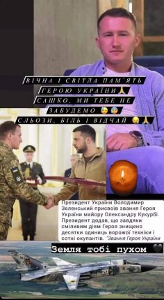 “З сумом можемо офіційно сповістити, що 26 липня 2022 року, захищаючи небо України, загинув Олександр Васильович Кукурба, 1994 р.н., уродженець с. Верхній Вербіж Нижньовербізької територіальної громади Івано-Франківської області — український військовослужбовець, майор, начальник розвідки штабу 299-ї бригади тактичної авіації Збройних сил України, Герой України”, – йдеться в повідомленні.