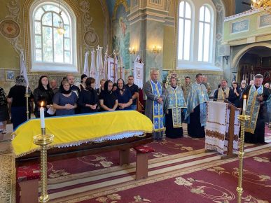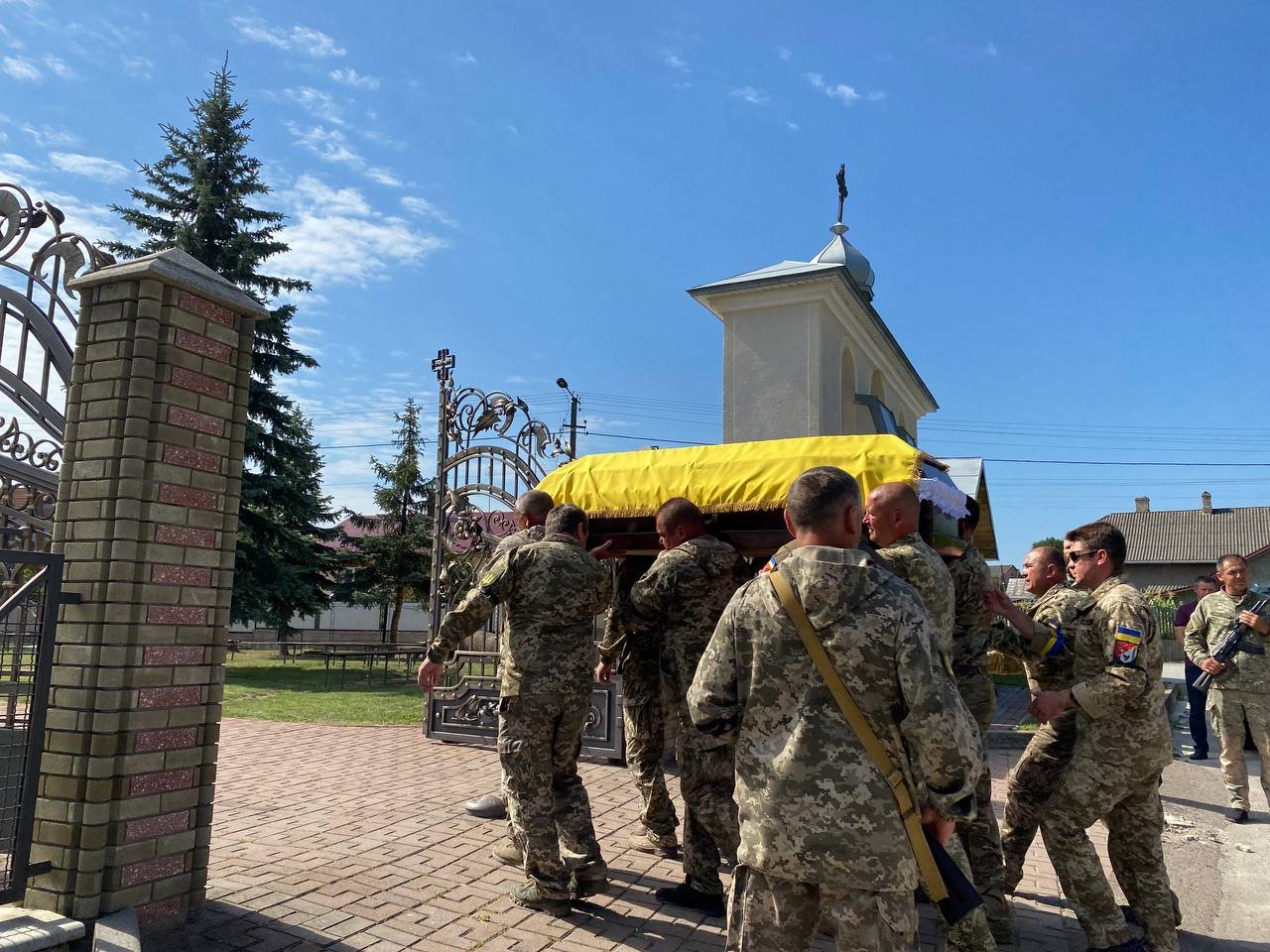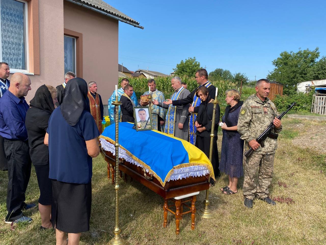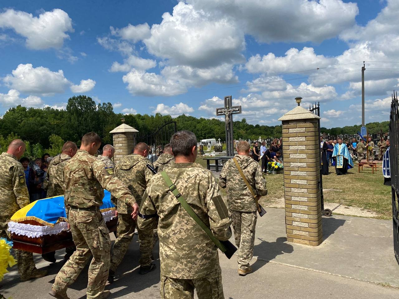 Провести мужнього сина України та востаннє попрощатися з ним прийшли священнослужителі, військовослужбовці, керівництво громади, його побратими, однокласники, друзі, найближчі та найрідніші люди.