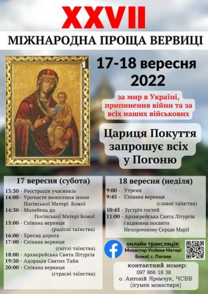 На наступні вихідні, 17-18 вересня, у с. Погоня відбудеться 27-а Міжнародна проща вервиці.
