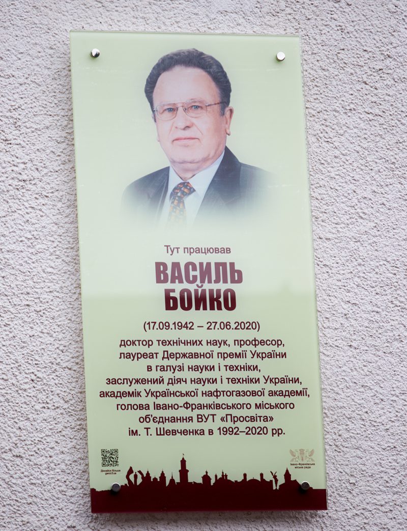На фасаді Івано-Франківського університету нафти і газу, в рамках міської програми “Івано-Франківськ – місто героїв”, відкрили анотаційну дошку Василю Степановичу Бойку.