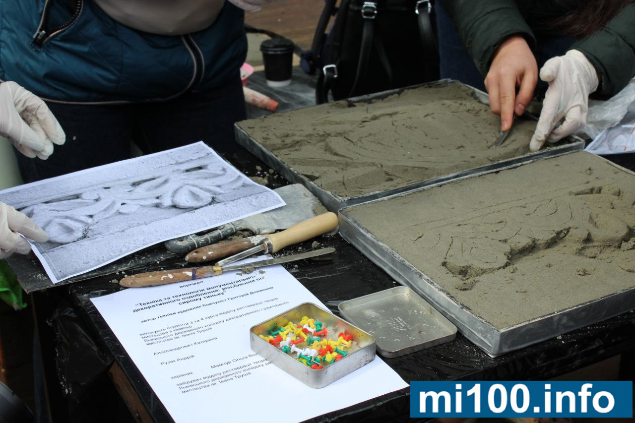 Студенти-реставратори Львівського державного коледжу декоративного та ужиткового мистецтва ім. Івана Труша під керівництвом викладачки-реставраторки Ольги Мамчур відтворюють елементи кам’яних вишиванок за унікальною технологією самого автора.