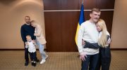 Так, до звільнених захисників України приїхали глава ОП Андрій Єрмак та перша леді України Олена Зеленська.
