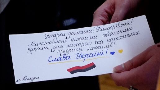 У кожний блок цигарок дівчата вкладають написаний каліграфічним почерком із жовто-блакитними сердечками лист-пам’ятку для бійців такого змісту: «Цигарки домашні Бандерівські! Виготовлені ніжними жіночими руками для настрою та натхнення пи..дити москалів. Слава Україні!».