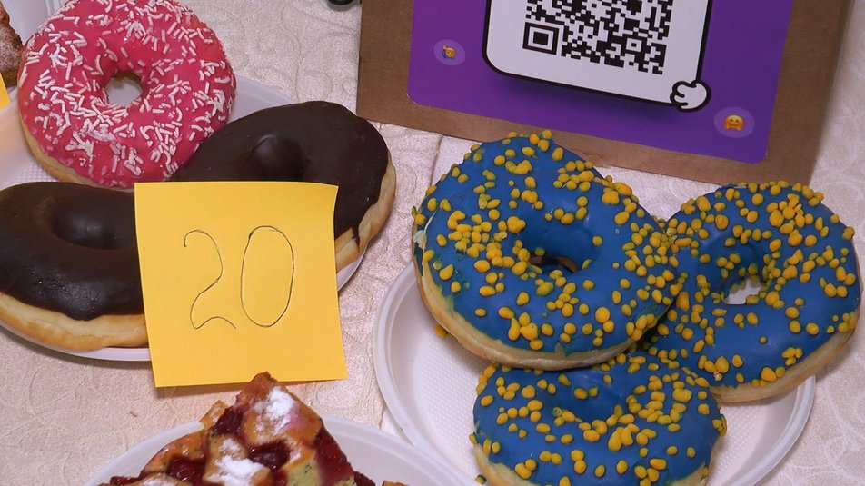 “Тістечка випікали, пиріг — за нашим сімейним рецептом. Я сам переїхав з Києва, жив у Бучі. У нас там усе зруйноване. Хочемо трохи зібрати грошей, аби допомогти чимось країні”, — розповідає Владислав Мостовий.