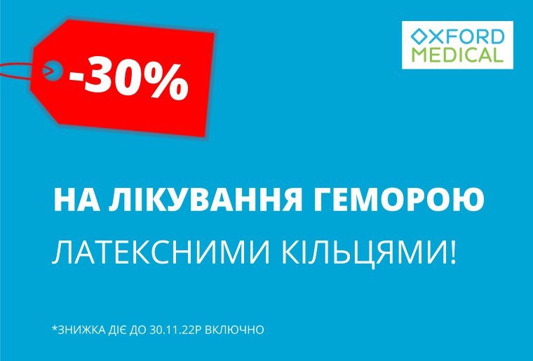 На тлі різкого підвищення цін дозволити собі лікування готовий не кожен. Тому, в медичному центрі Оксфорд Медікал до 30 листопада включно ви маєте можливість пройти малоінвазивне лікування геморою методом лігування латексними кільцями із приємною знижкою -30% за курс.