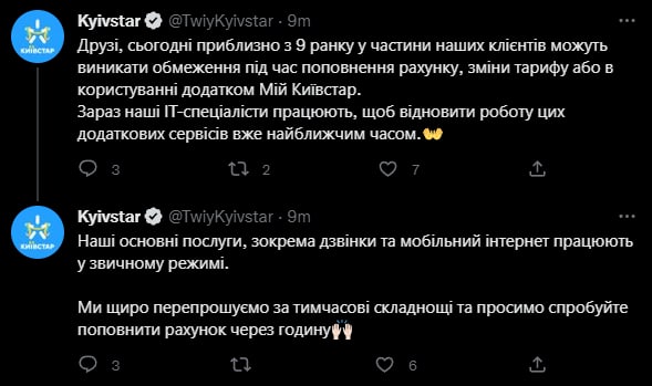 Зараз наші ІТ-спеціалісти працюють, щоб відновити роботу цих додаткових сервісів вже найближчим часом, – повідомляють в компанії.