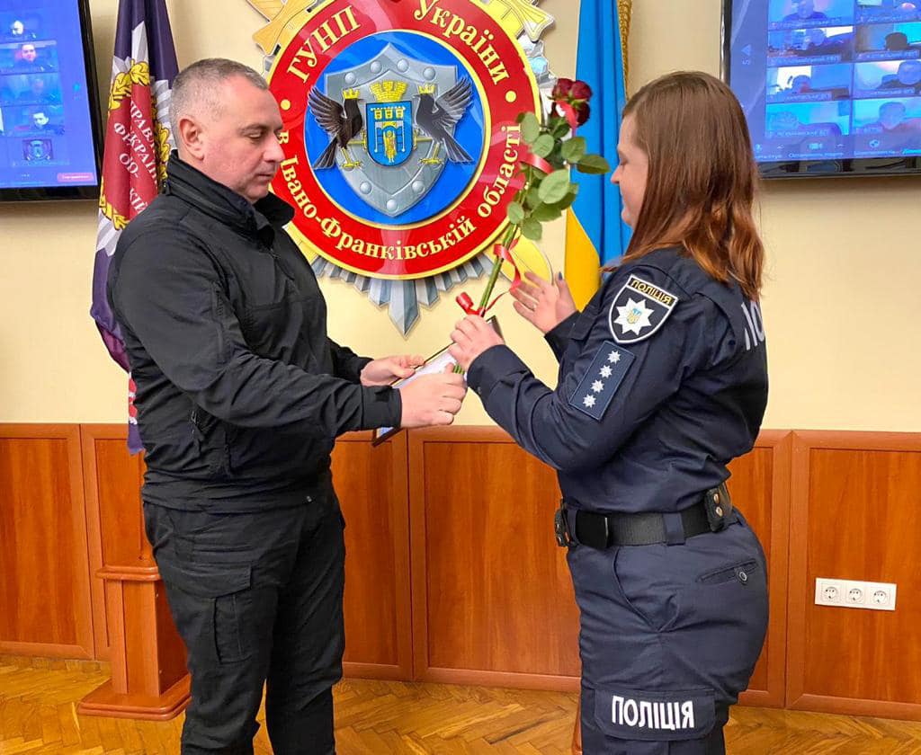 За проявлений професіоналізм, сумлінне виконання службових обов’язків та за оперативний розшук неповнолітньої особи, яка пропала безвісти, подякою обласної поліції нагороджено Христину Даців.