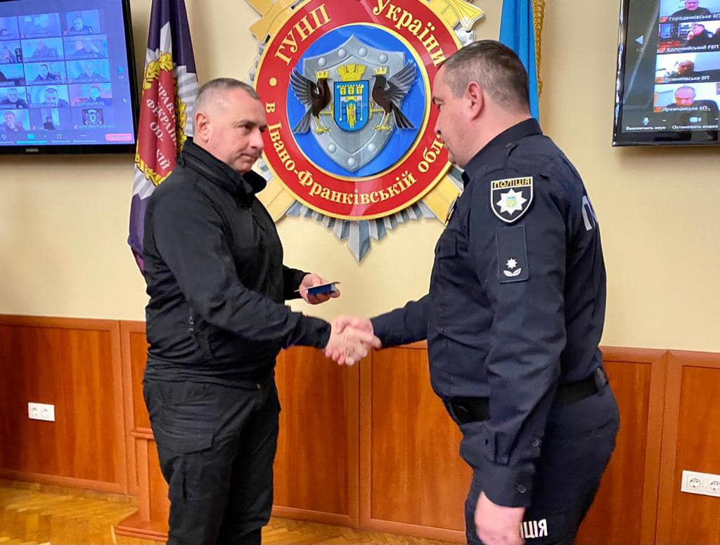 Очільник поліції вручив почесні нагрудні знаки, медалі та подяки поліцейським, за сумлінну працю, розкриття резонансних злочинів та за те, що щоденно й віддано несуть службу для спокою, безпеки прикарпатців, особливо в цей нелегкий для країни час.