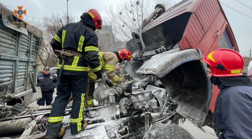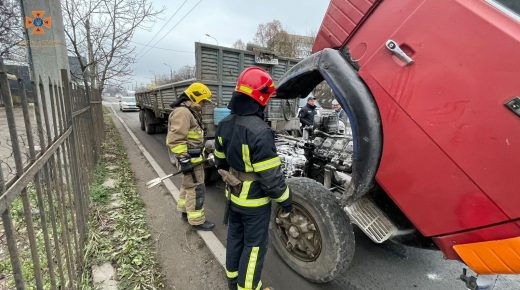 Також на місці події рятувальники надали допомогу по від’єднанню клем акумуляторних батарей вантажного автомобіля. Постраждалих на місці події немає.