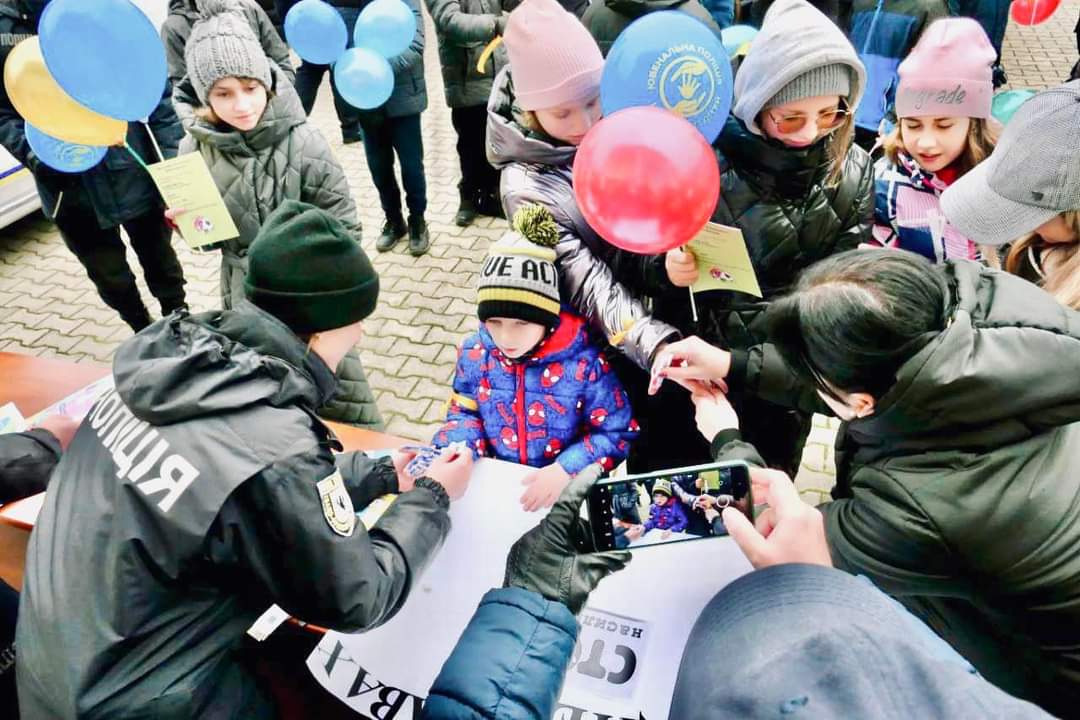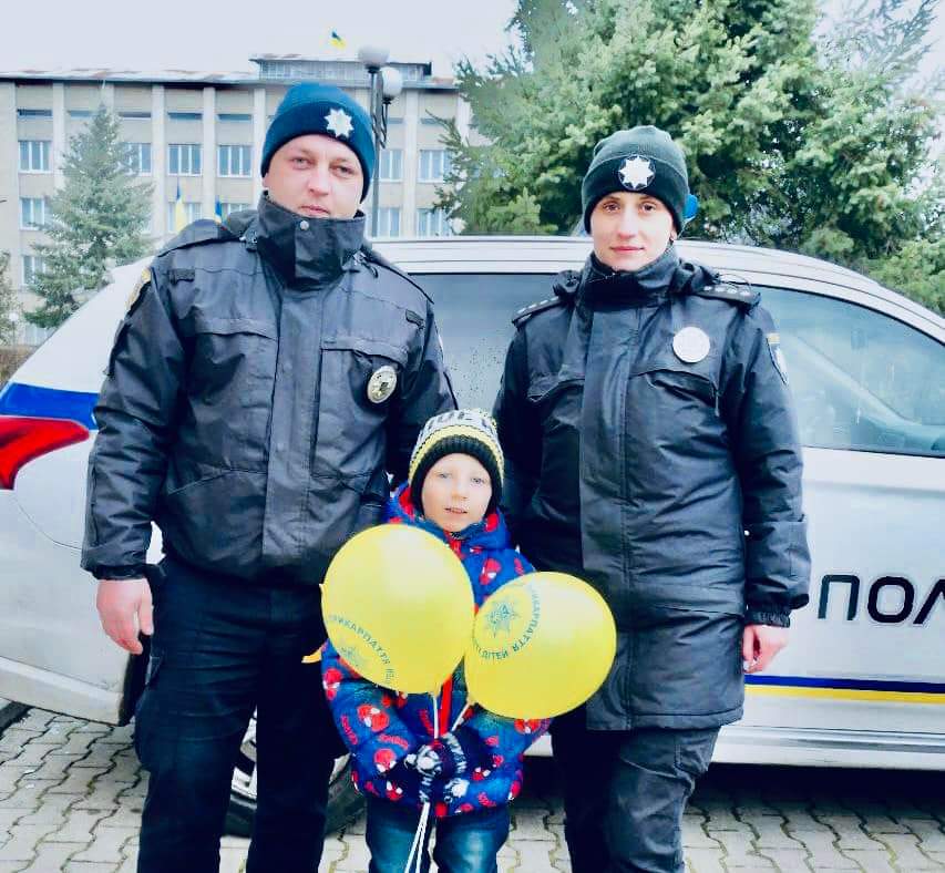 Наприкінці акції поліцейські подарували дітям повітряні кульки та познайомили зі службовим автомобілем.