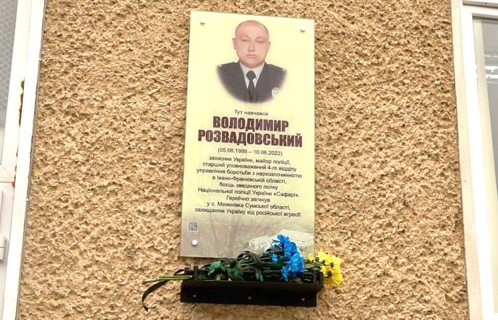 6 грудня на території Хімчинського ліцею «Інтелект» відбувся захід з нагоди відкриття пам’ятної дошки загиблому – старшому оперуповноваженому управління боротьби з наркозлочинністю в Івано-Франківській області Департаменту боротьби з наркозлочинністю Національної поліції України майору поліції Володимиру Розвадовському.