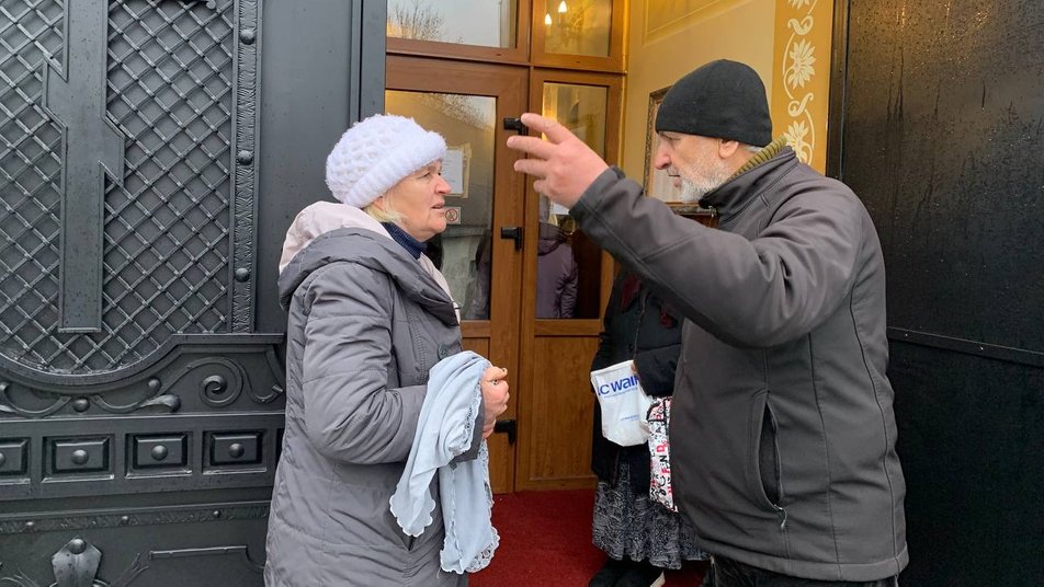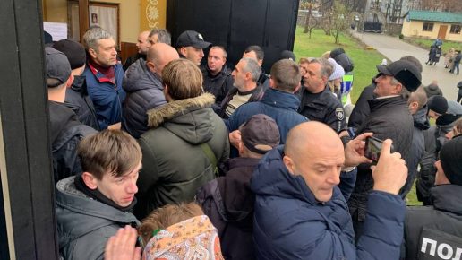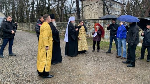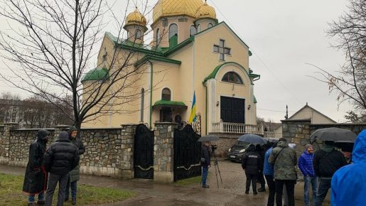 До протестувальників вийшли кілька попів зі словами: “Слава Україні, ми — за мир”. За кілька хвилин вони повернулися в приміщення церкви.