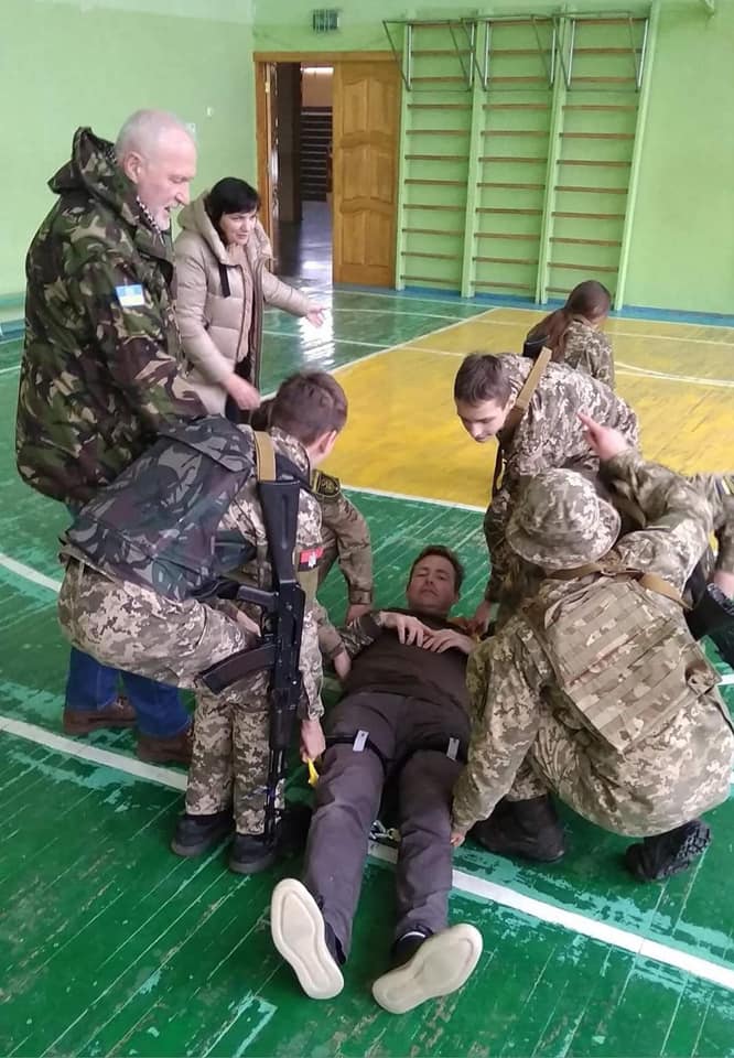 Ґлен Кліркленд пояснював місцевим жителям, як надавати медичну допомогу пораненим під час воєнних дій. Захід відбувався в одному з освітніх закладів Калуша. Військовий інструктор розповідав і показував, що треба робити під час поранень і травм. Курс першої медичної допомоги пройшли і старшокласники.