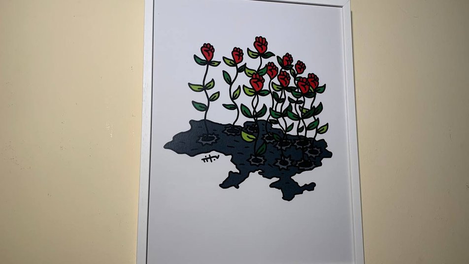 Серія виставлених на аукціон робіт присвячена сьогоднішнім подіям в Україні та майбутній перемозі, пояснює художник Нікіта Тітов. Усього представили 15 лотів — зокрема картину, яку графік написав після переїзду до Івано-Франківська. Її автор присвятив місцевим жителям та місту.
