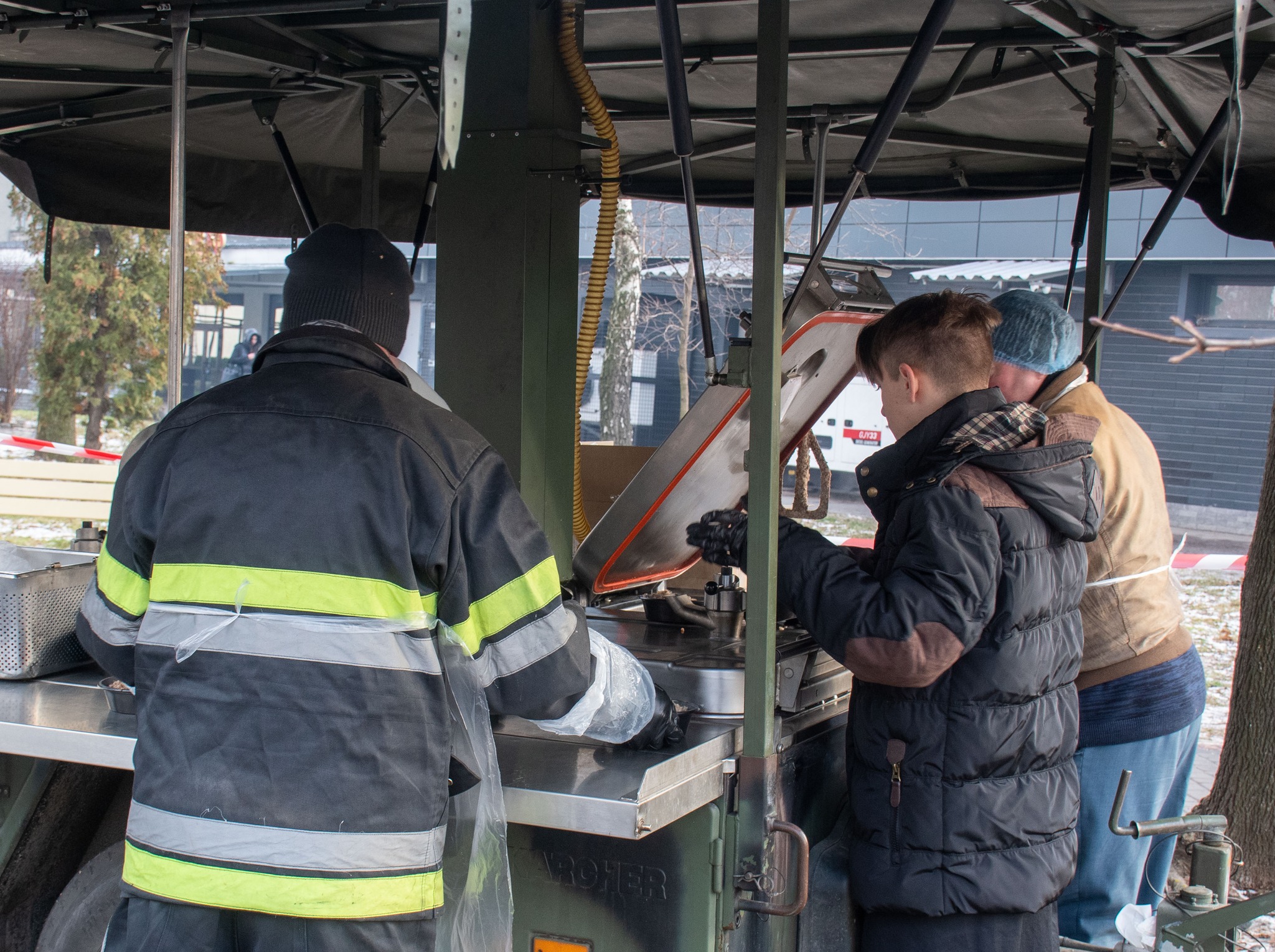 «100 літрів води і каші десь вийшло не менше 200 літрів. 300 порцій вже роздали, 300 порцій ще тут є», – розповідає кухар-волонтер Михайло Хвесик.