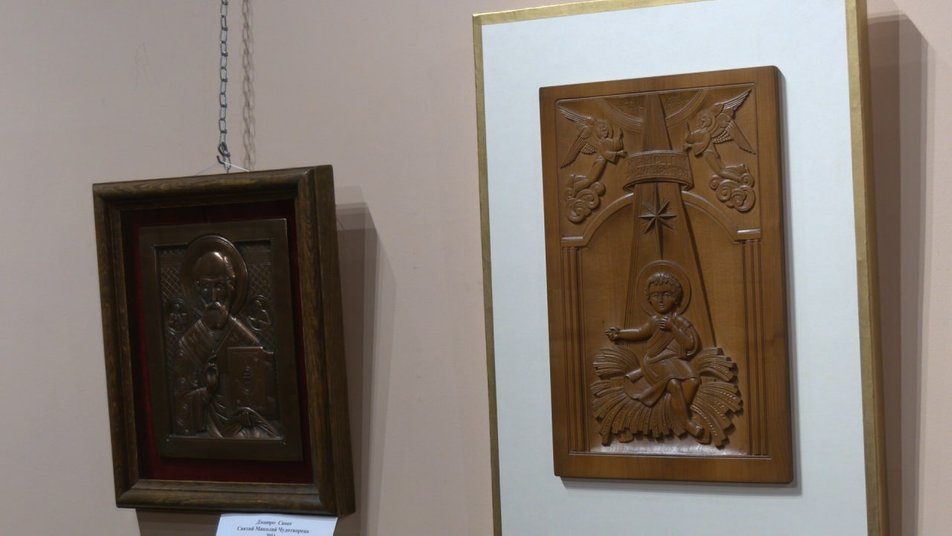 Один з учасників виставки Дмитро Сивак — майстер художньої обробки по дереву, іконопису, малярства представив декілька своїх робіт на святкову тематику. Це — Різдво Христове в дереві, Миколай Чудотворець в металевому оздобленні та коляда. Усе — інтерпретація із власного дитинства.