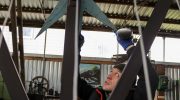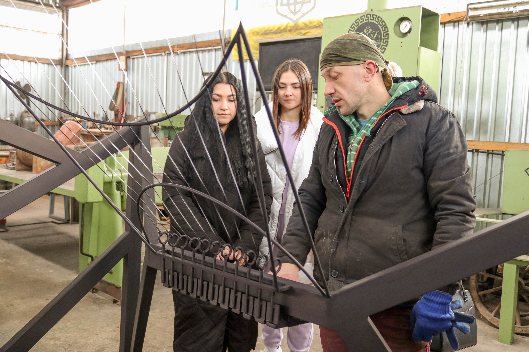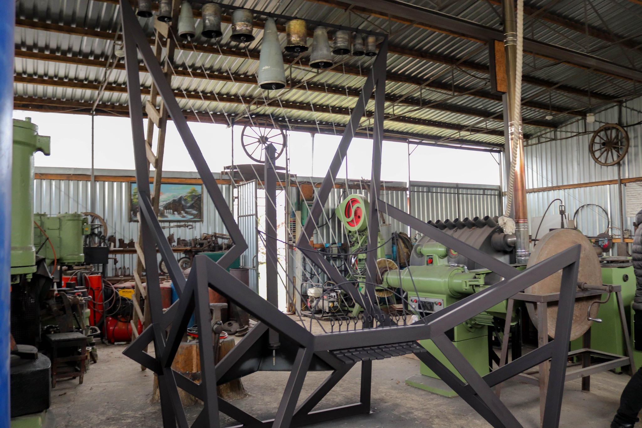 Загалом ковальський витвір досить об’ємний, 3-D формату – висота інструменту – 3 м 50 см, ширина та глибина – 2 м 50 см. Вага – до пів тонни.