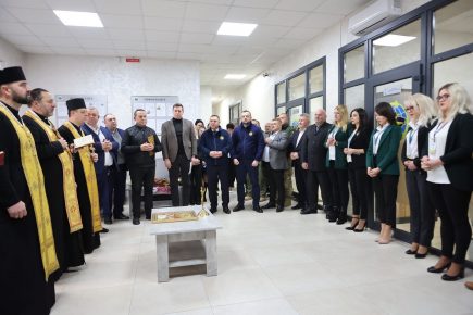 Щойно пролунав сигнал про відбій повітряної тривоги, як священники освятили нове приміщення відділу міграційної служби.