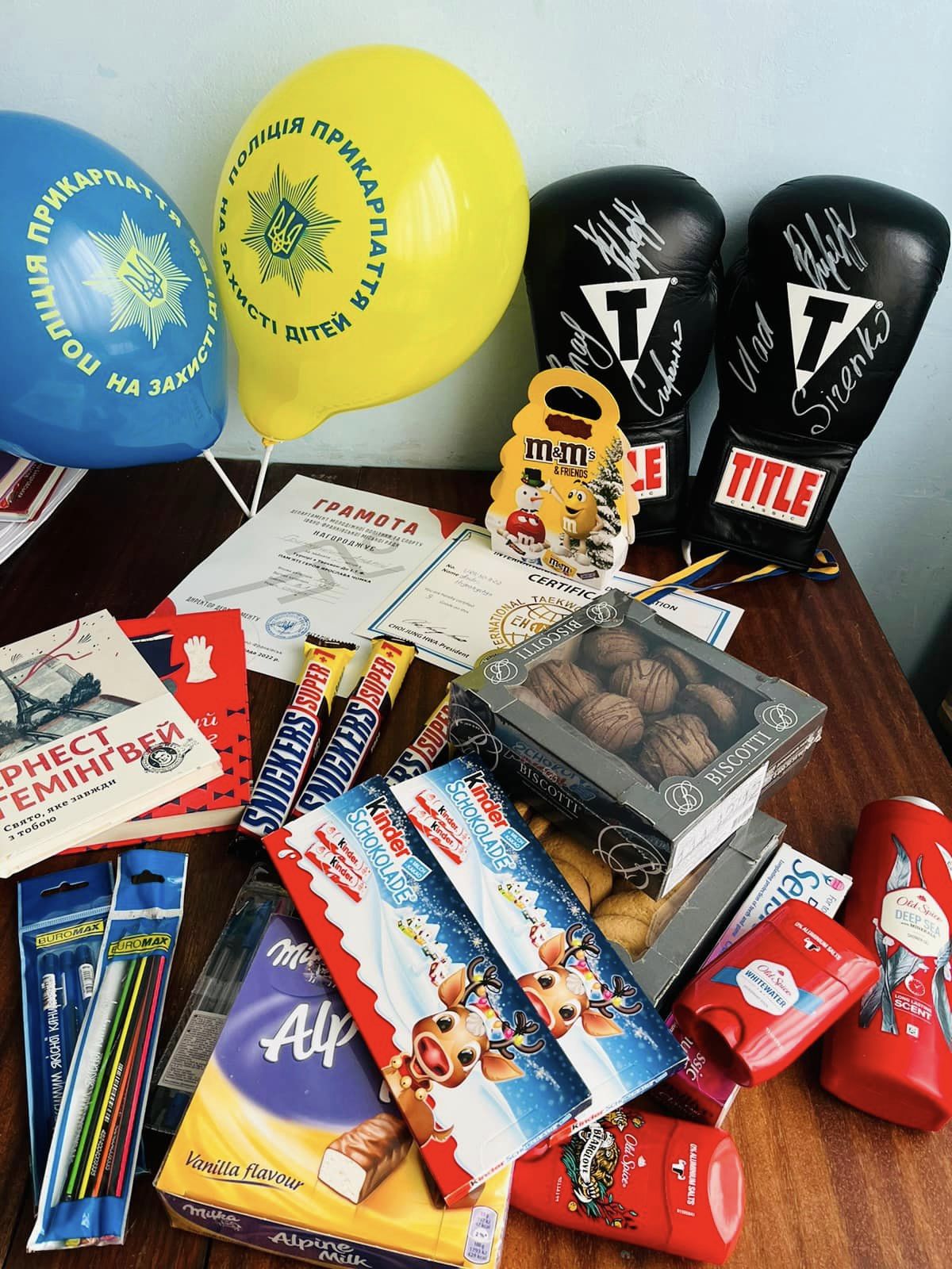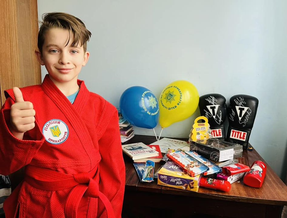 Хлопчик захоплюється спортом, тому мріяв про боксерські рукавиці та кімоно. Тепер у нього є рукавиці з підписом українського професійного боксера Владислава Сіренка та кімоно від ювенальних поліцейських.