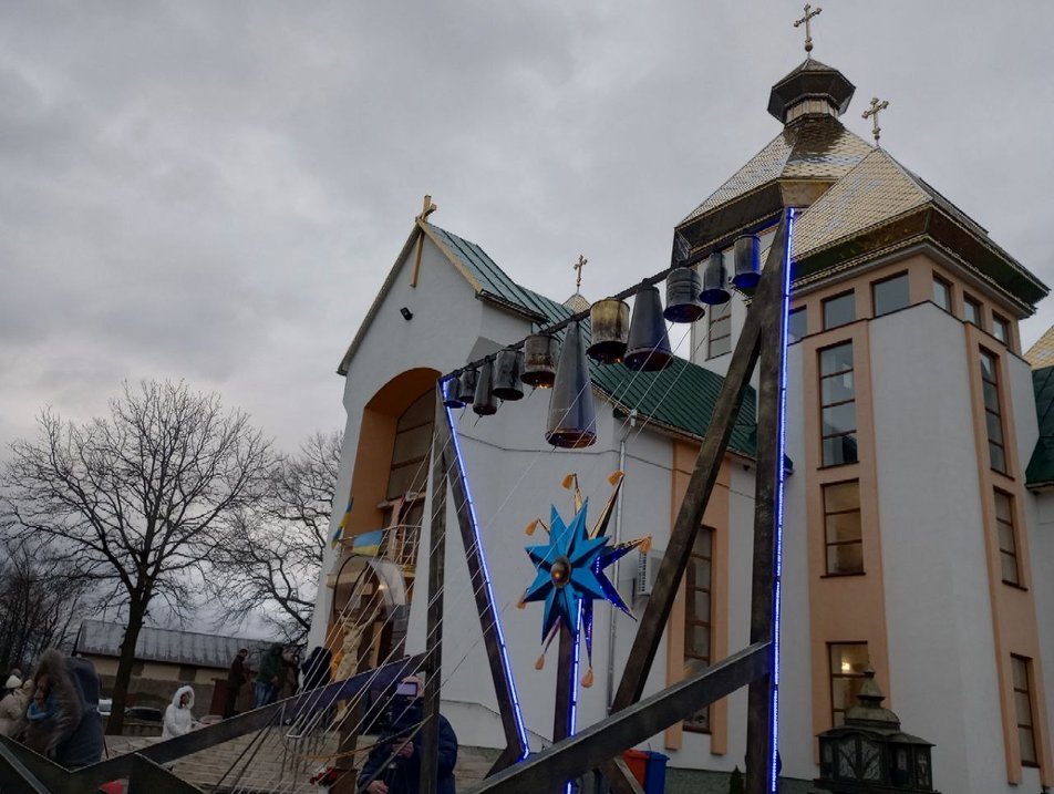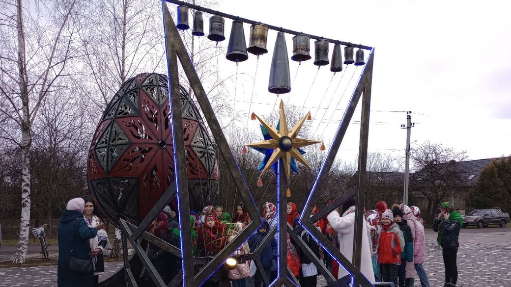 У Голині Калуського району зіграли “Щедрик” на карильйоні з гільз у супроводі дитячого хору.