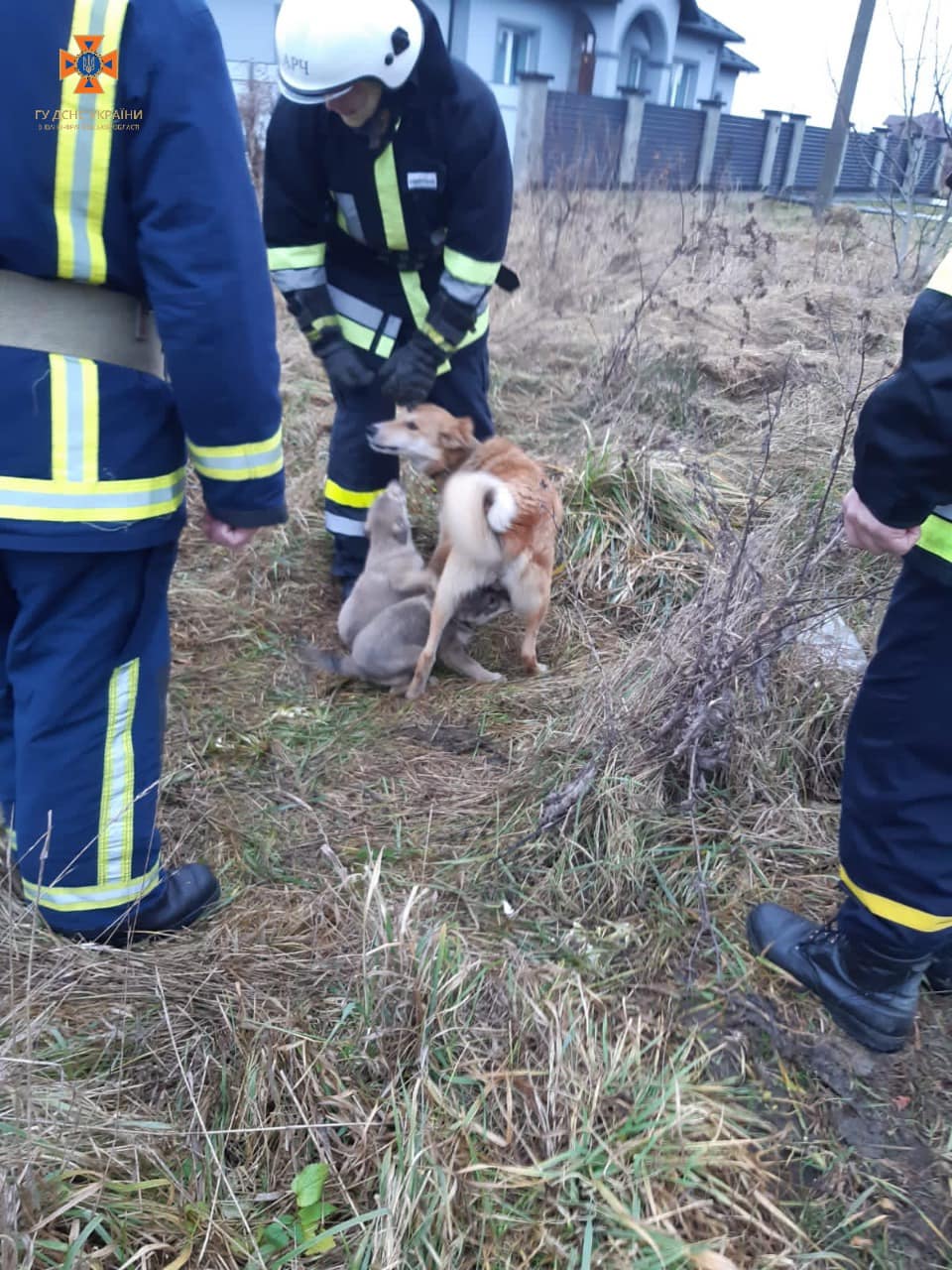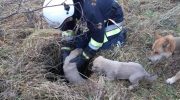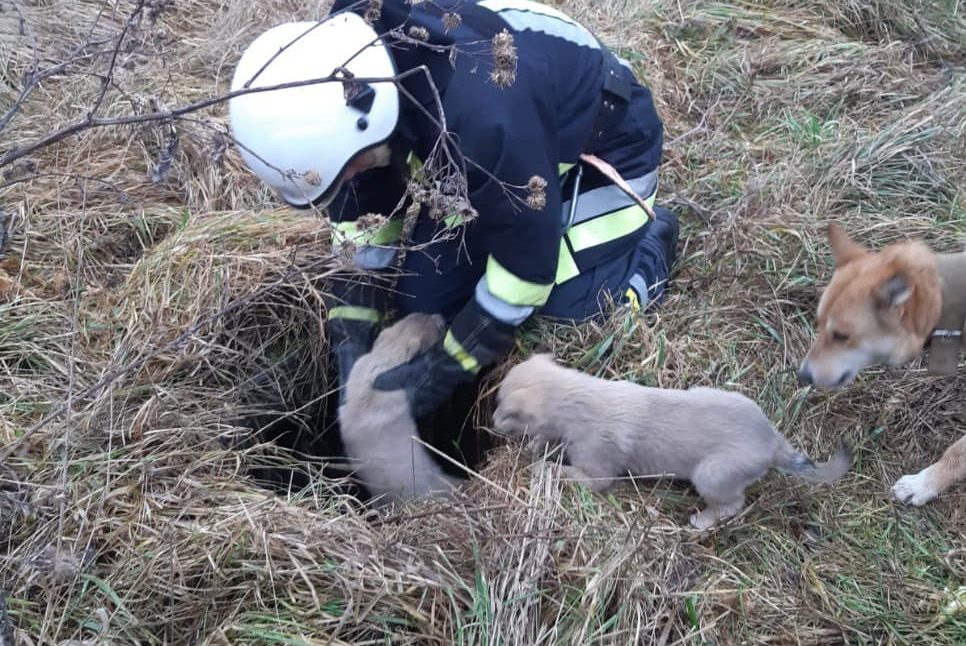 Про пригоду рятувальників повідомила жінка, котра почула сильний гавкіт дорослої собаки біля ями, поблизу села. Підійшовши ближче, жінка побачила, що на глибині близько двох метрів, у ямі знаходяться маленькі собачки.