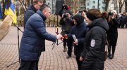 В меморіальному сквері Івано-Франківська командир військової частини Національної гвардії України разом з керівництвом міста вшанували пам’ять Героїв, які загинули в бою з російським окупантом та Героїв битви під Крутами покладанням пам’ятних лампадок та передали державну нагороду родині загиблого гвардійця.