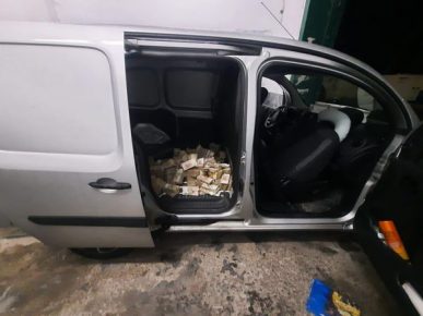 Численні пачки гривень знайшли під час поглибленого огляду мікроавтобуса. Водій повертався з-за кордону та намагався незаконно перемістити їх в Україну.