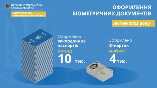 Зокрема, оформлено 10003 паспорти громадянина України для виїзду за кордон ( на 142 паспорти більше, аніж у січні)) і 3920 національних паспортів громадянина України у вигляді ID-картки ( більше на 258 документів).