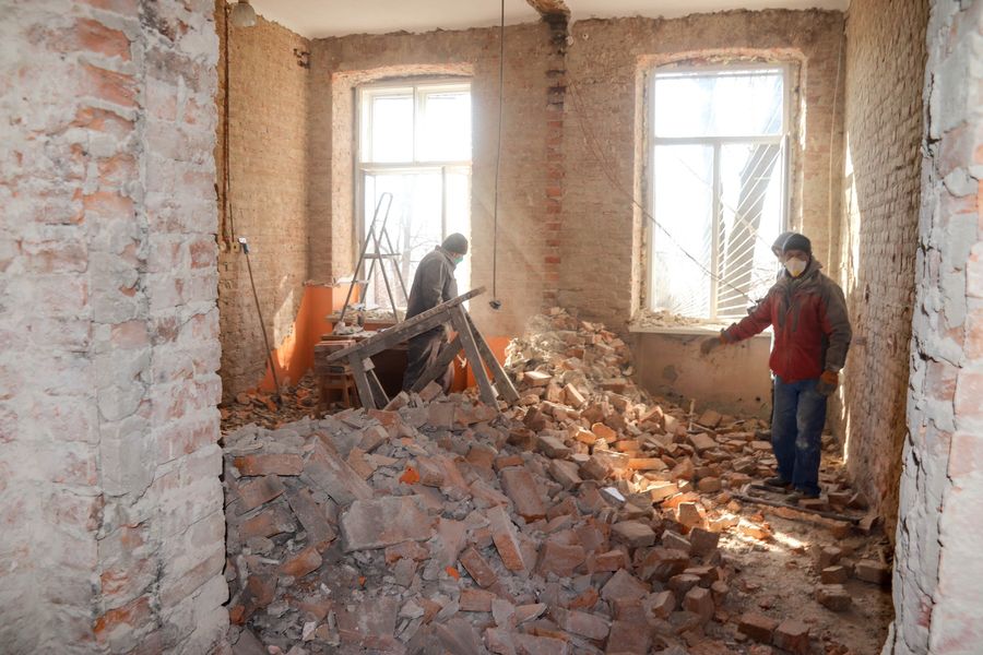 Внутрішні ремонтні роботи здійснюються коштом благодійної організації “Благодійний фонд ВОСТОК-SOS”. Зовнішні роботи та перекриття даху планується зробити в співпраці з Міжнародною організацією з міграції. Деякі деталі фасаду сторічної будівлі будуть збережені.
