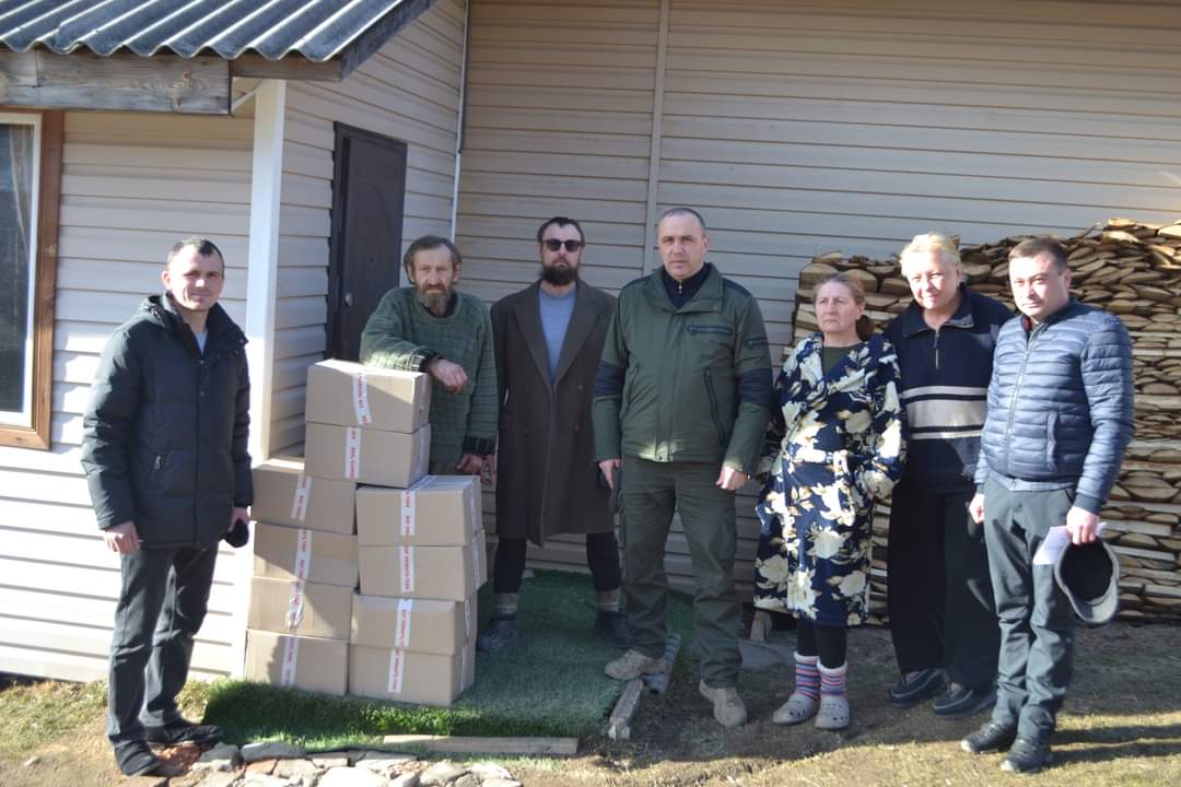 Поспілкувавшись з родинами переселенців та керівниками закладів Бровчук Василь Петрович передав гуманітарну допомогу від благодійних організацій, що напередодні отримала районна військова адміністрація для потреб соціальних закладів району, а саме – це продуктові набори, засоби особистої гігієни, тощо.