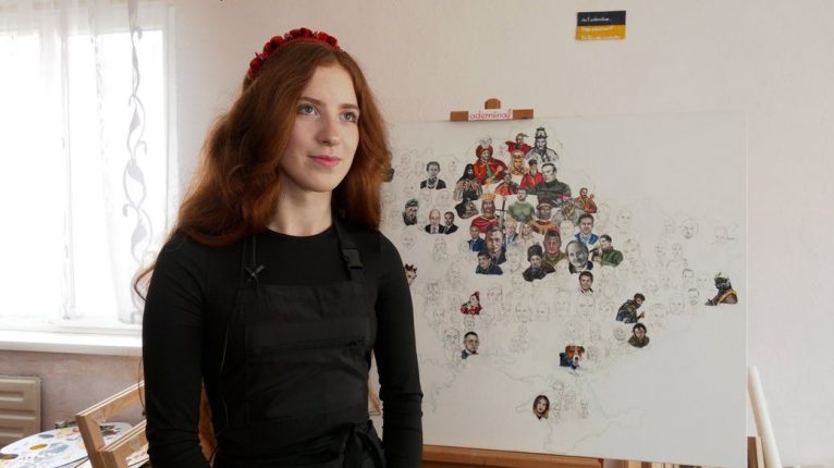 20-річна художниця з Івано-Франківська на псевдо Едеміна створює картину “Слава Україні”. Дівчина зображає на ній відомих українців — знаних політичних та громадських діячів, військових, а також співаків, журналістів, блогерів. Серед них є й декілька іноземних діячів, які підтримали Україну під час великої війни.