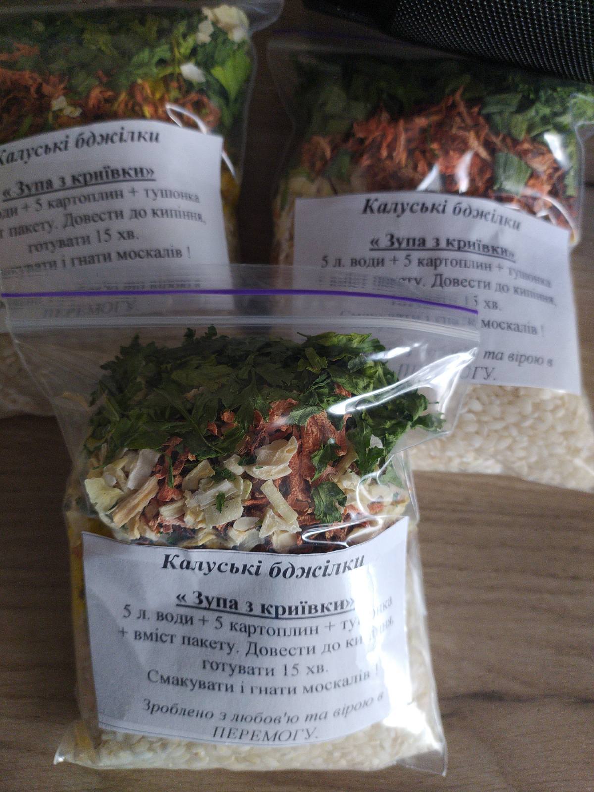 Тисячі фасованих сухих супів, борщів, каш, виготовленими «Калуськими бджілками» вже відправлено на передову.