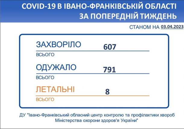 В Івано-Франківській області впродовж тижня зареєстровано 607 нових випадків