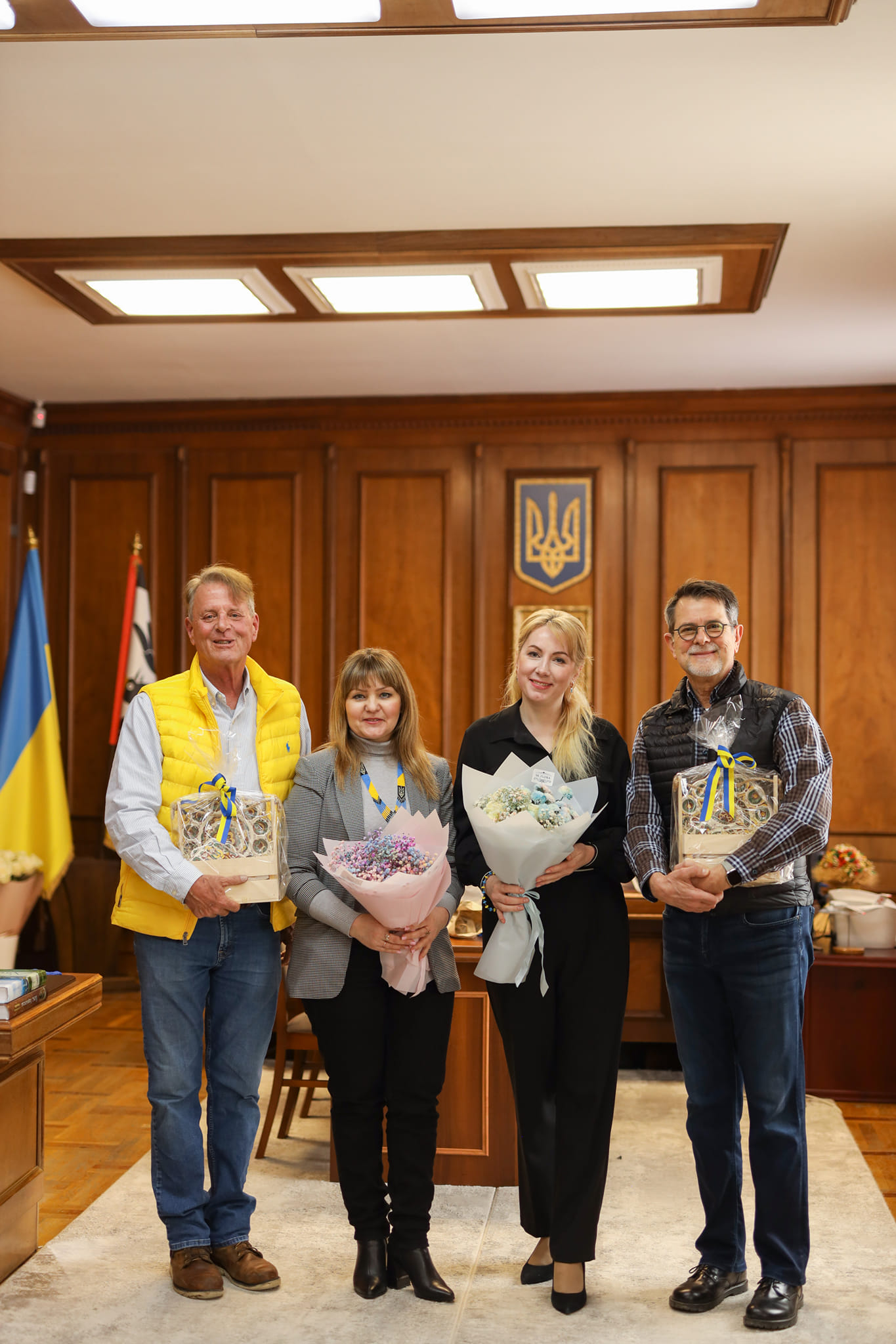 Також благодійники розповіли про цікаву американсько-українську програму, яку започаткували американські учні, які хочуть тісно комунікувати з українськими однолітками. На знак цього вони розробили футболки у патріотичних синьо-жовтих кольорах, де зображені два символи, один з яких створений американцями, а інший – українцями.