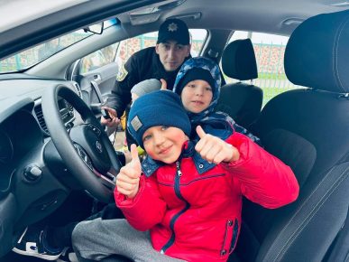 Найбільш цікавою для дітлахів виявилась заключна частина заняття – можливість посидіти за кермом поліцейської автівки, увімкнути проблискові маячки, сказати кілька слів у гучномовець та сфотографуватися з правоохоронцями.