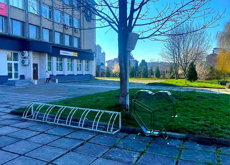 Першу металеву конструкцію у вигляді серця для збору пластикових кришечок встановили в Калуші на проспекті Лесі Українки біля центральної пошти.