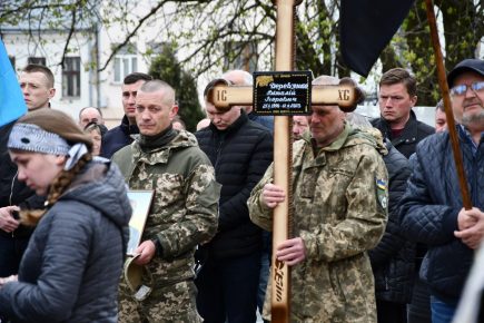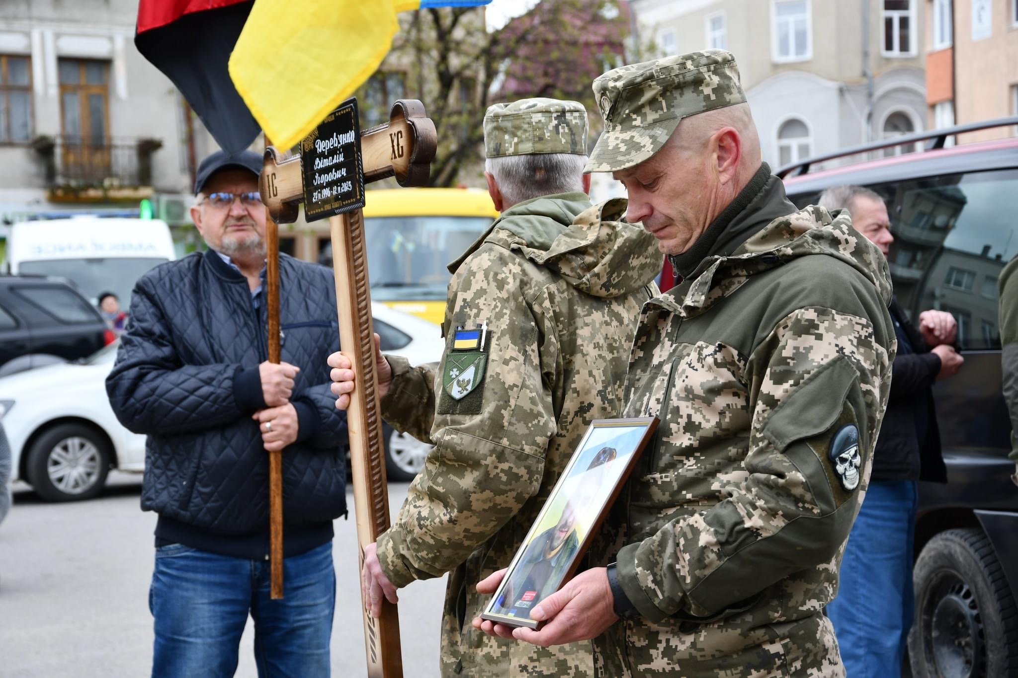 Сьогодні, 19 квітня, в Рогатині зустріли загиблого на війні Віталія Дерев’янка.