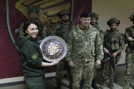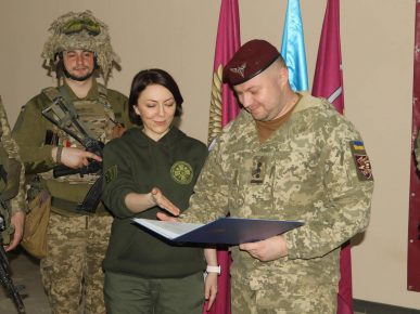 Передала лист заступниця міністра оборони України Ганна Маляр. Вона наголосила, що десантники 95-ї бригади перші, хто отримав такий лист-подяку від Президента України.