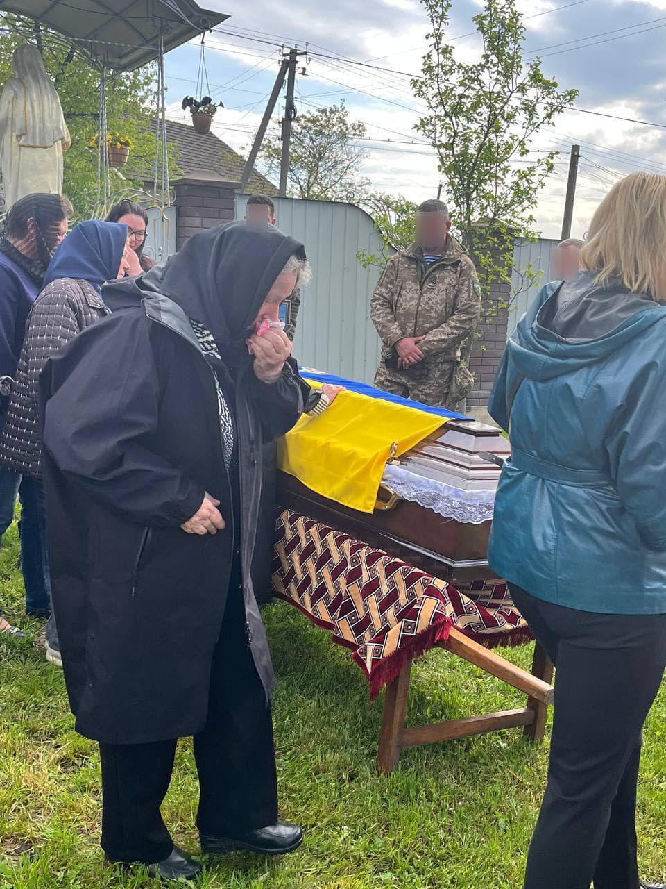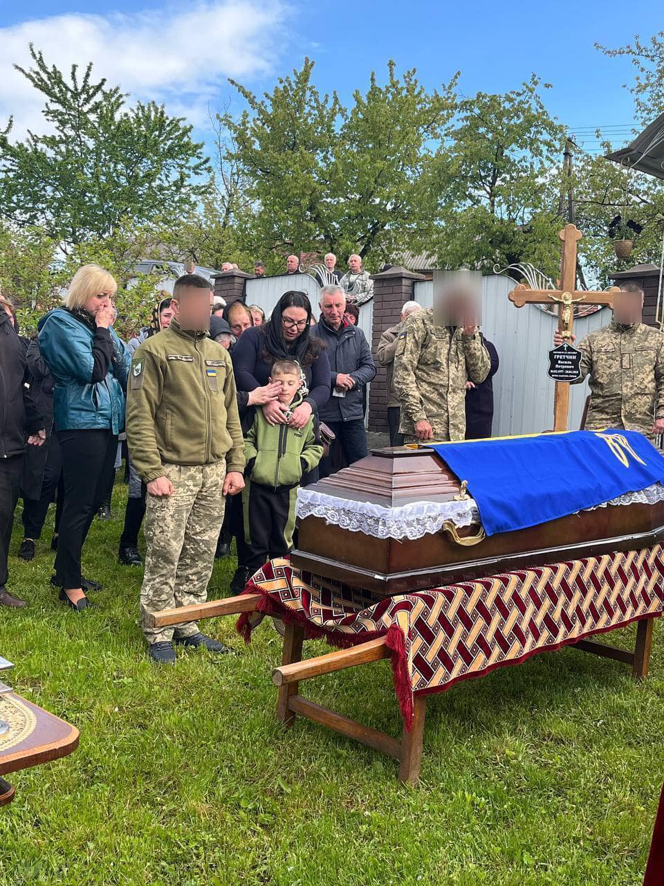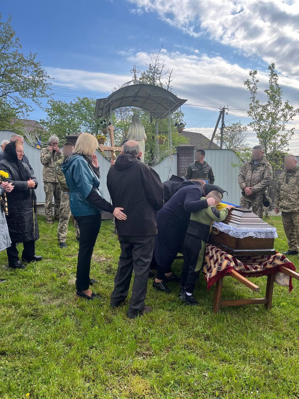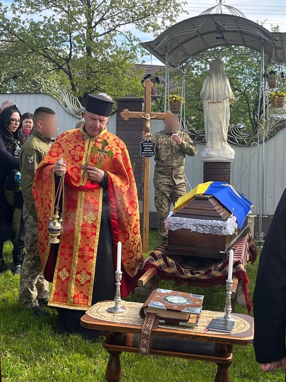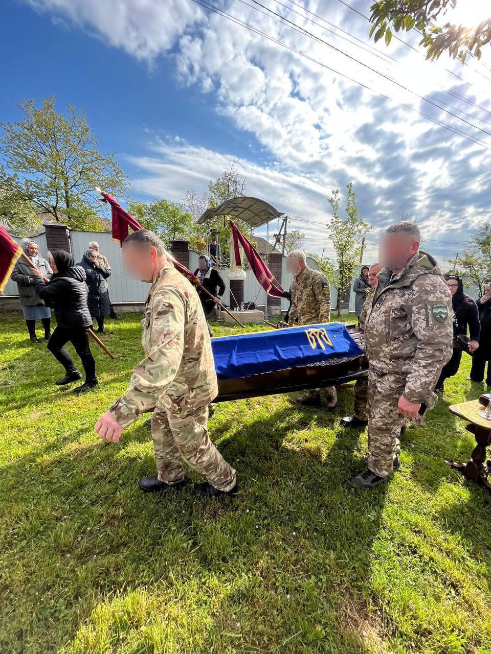 На родинному подвір’ї воїна зустрічали родина, односельці, священнослужителі, мешканці Войнилівської громади.