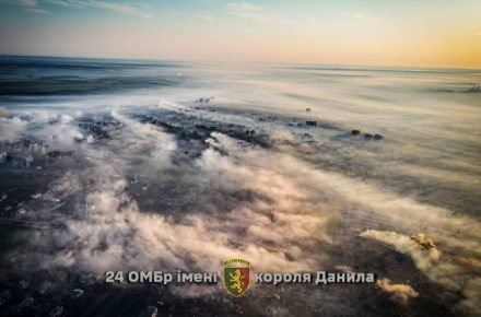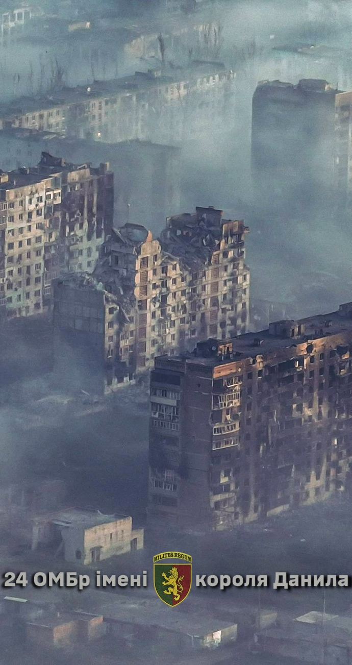 24 ОМБр імені короля Данила оприлюднила фото зруйнованого внаслідок нападу Росії Бахмута.
