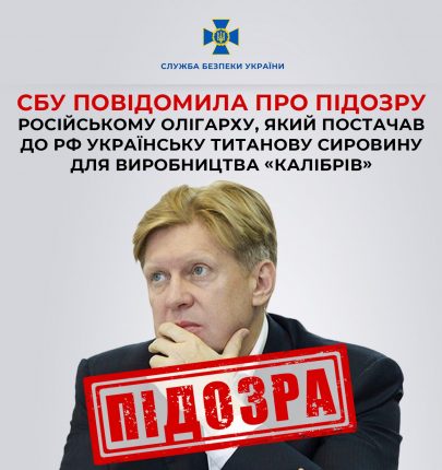 СБУ повідомила про підозру російському олігарху, який постачав до рф українську титанову сировину для виробництва «Калібрів»
