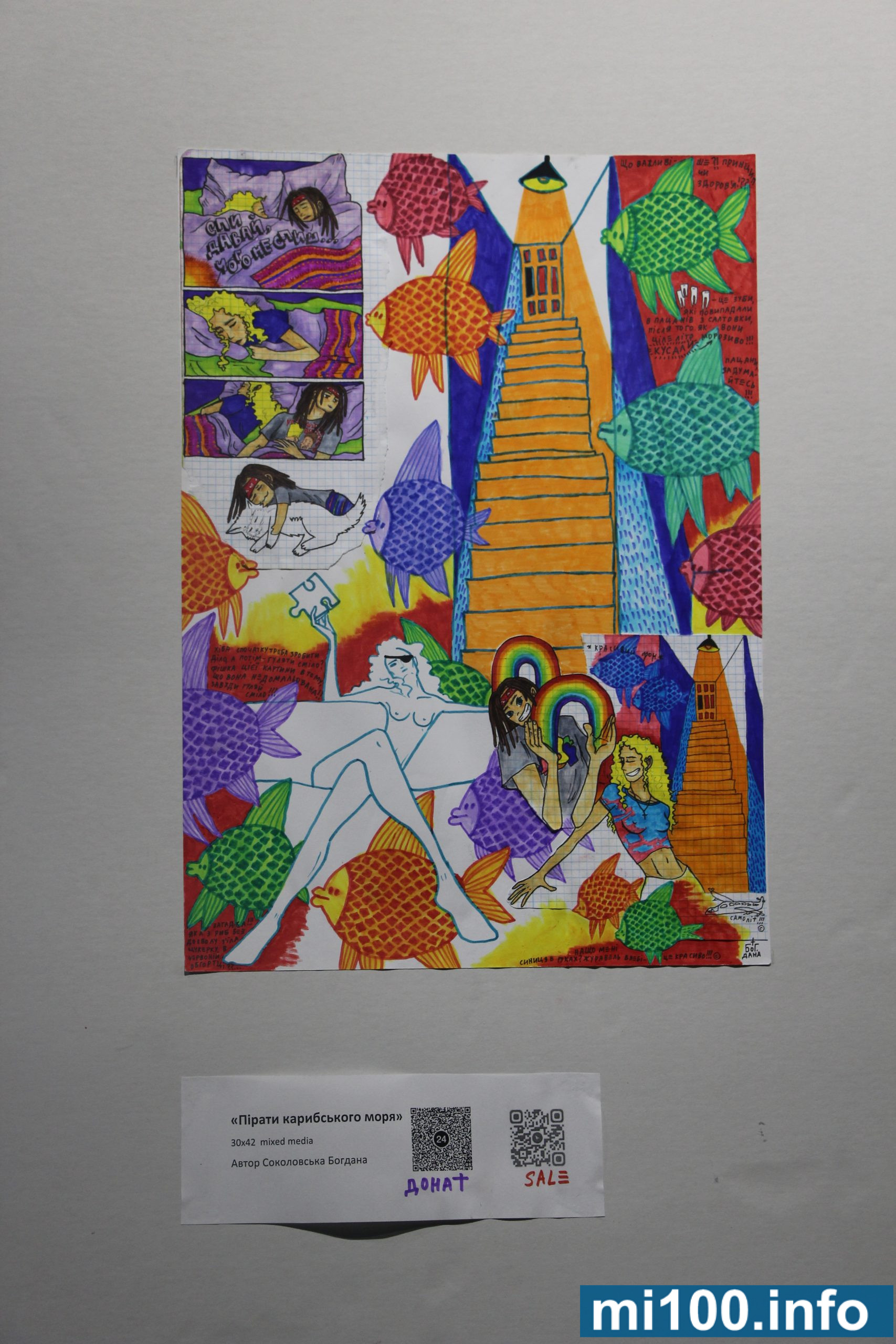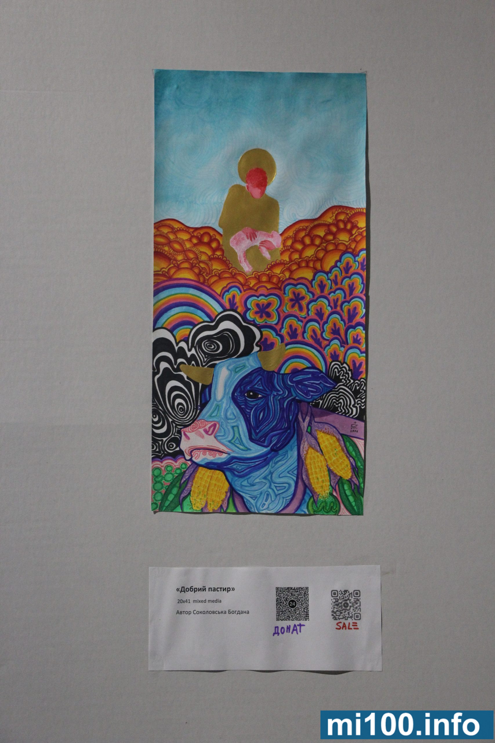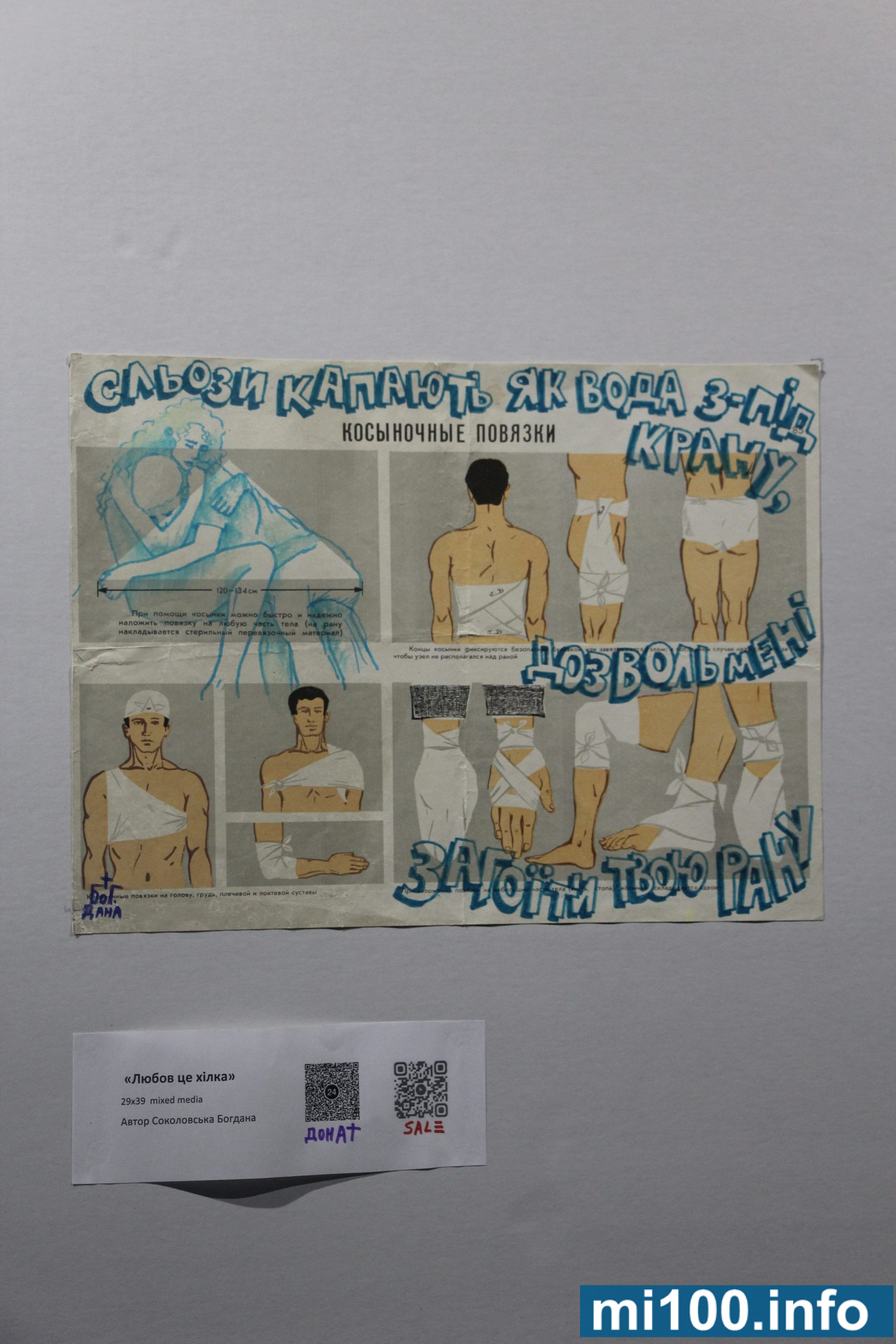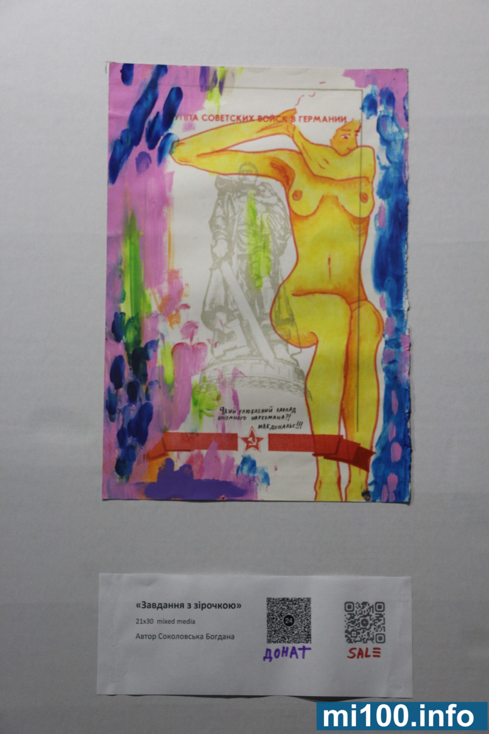 Під кожною картиною знаходиться QR-код за яким можна задонатити для військового.
