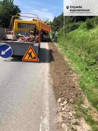 “У селах Стопчатів і Нижній Вербіж проводимо зміцнення узбіч дороги Р-24: заповнюємо ґрунтом промоїни, ями і провали на укосах насипів і виїмок, підсипаємо додатковою піщано-щебеневою сумішшю та утрамбовуємо пошкоджені ділянки”, – йдеться у дописі.