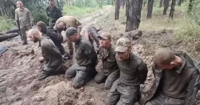 На кадрах відеоролика видно мінімум десятьох полонених.