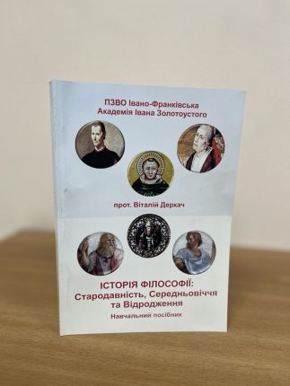 З метою збагачення християнської філософської думки в Україні та навчально-методичного забезпечення дисципліни «Історія філософії», викладач кафедри соціально-гуманітарних дисциплін Івано-Франківської академії Івана Золотоустого й аспірант кафедри філософії, соціології та релігієзнавства Прикарпатського національного університету імені Василя Стефаника прот. Віталій Деркач підготував до видання навчальний посібник «Історія філософії: Стародавність, Середньовіччя та Відродження».